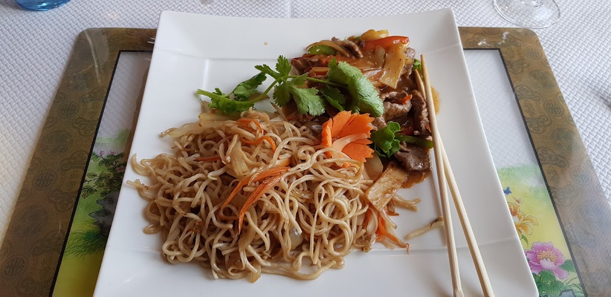 The menu offers a mix of classic Asian flavors with dishes that are comforting and full of character. One plate that immediately stands out is the Riz Cantonais Et Boeuf Piquant. The fried rice is fragrant and balanced, while the spicy beef adds a satisfying kick that keeps every bite interesting. It’s the kind of dish that feels hearty without being heavy, and it pairs nicely with a glass of wine from the restaurant’s selection.